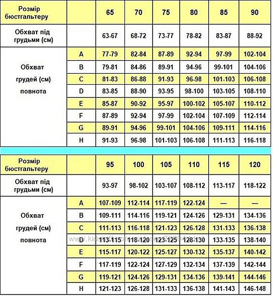 Размер чашки | F, G |