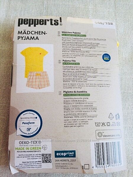 146-152 Pepperts Німеччина Літня піжама, домашній комплект. футболка і шортики100% Бавовна, повномірна