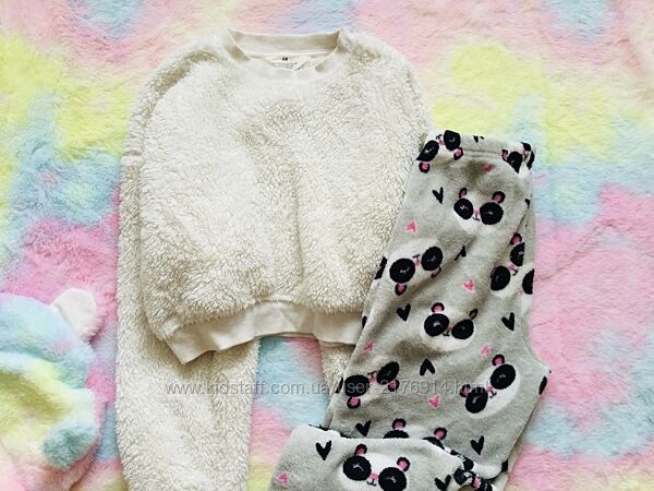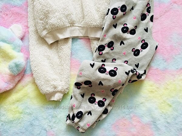 11-12 р, 152 зріст Primark. H&M пухнаста флісова піжама, кроп- топ, реглан і штаніки. на манжетах. м"якенька, теплаСтан ідеальний