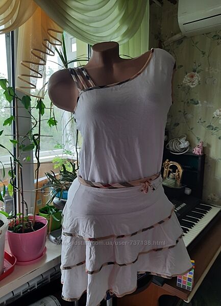• Топ і спідниця Burberry. Розмір М ( вказано L, але маломірить, тому пишу М). Дуже легке, віскоза. Сидить і виглядає грайливо. Ярусна спідниця гарно коливається при русі. Чудово для літа, на пляж, річку. Манекен розмір S, тому сидить не дуже вдало. Взагалі комплект класний.