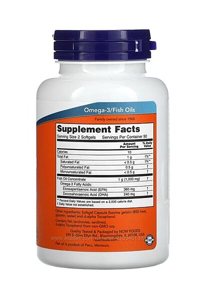 Подробное описание: NOW Foods омега-3 в мини-капсулах, 180ЭПК / 120ДГК, 180капсул