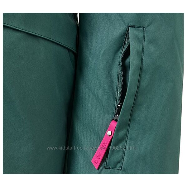 Надзвичайно високий комір. Двостороння передня блискавка із захистом підборіддя та штормовим клапаном із застібками-кнопками. 3 передні кишені. Кишеня для скі-пасу на передпліччі. Внутрішня кишеня на блискавці. Рукав з застібкою-липучкою для регулювання ширини. Трохи подовжена задня частина. Перевірено на наявність шкідливих речовин – зовнішніми акредитованими інститутами.