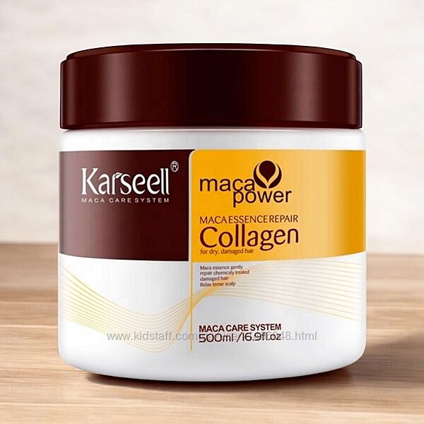 Маска-есенція Karseell Collagen Hair Mask містить колаген, арганову олію та натуральні трави для глибокого відновлення сухого та пошкодженого волосся. Продукт проникає глибоко в структуру волосся, забезпечуючи інтенсивне зволоження і роблячи локони гладкими та блискучими. Маска підходить для всіх типів волосся, включаючи пофарбоване та хімічно оброблене.