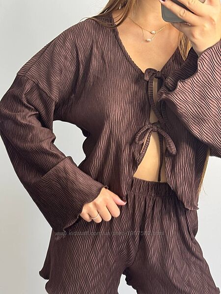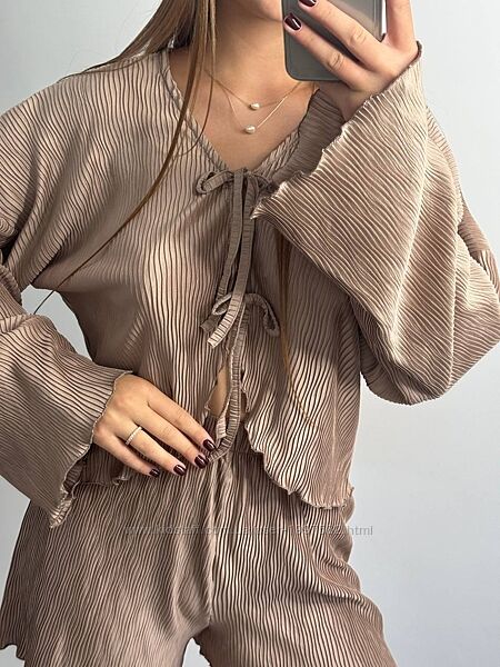 Подробное описание: Стильний комплект на літо. Кофточка з довгим рукавом, вхідного крою на зав