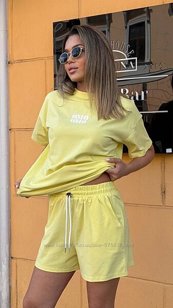 Подробное описание: 42-44, 46-48 костюм футболка та шорти кулір бавовна