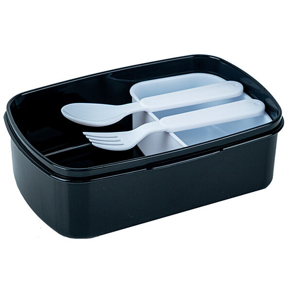 Внутрішнє наповнення включає столові прилади для комфортного перекусу: виделка, ложка та міні-контейнер. Це дуже зручно та гігієнічно.