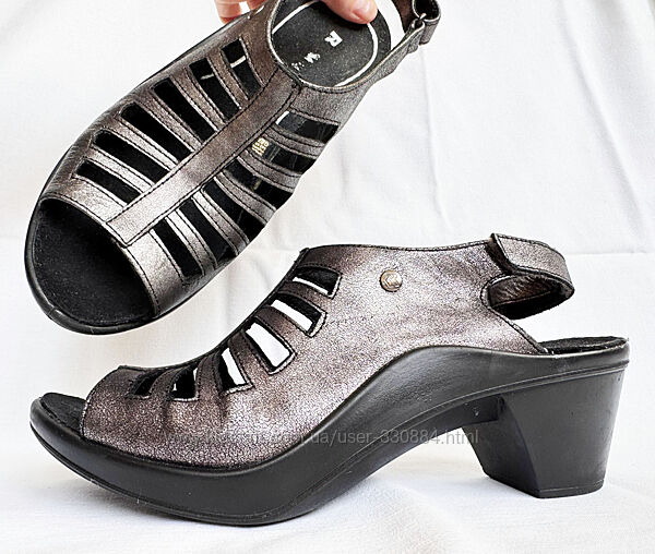 835. Оригінальна модель, комфортні, м´які босоніжки відомого німецького бренду "Romika" у відмінному стані, чисті та акуратні - просто пару раз взуті, устілки чисті, підошва без зносу. Єдине: на правому підборі з самого верху декілька поверхневих мікроцарапок, чорні на чорному тлі зовсім не помітні.Компанія "Romika" виготовляє взуття з 1921 року. Весь цей час компанія робила якісне, красиве, а найголовніше зручне взуття. З того часу нічого не змінилося, ви все також можете насолодитися зручністю цього взуття. Взуття виготовляється тільки із натуральних матеріалів: шкіра, нубук, текстиль. Якість та довговічність забезпечується ливарним методом кріплення підошви.