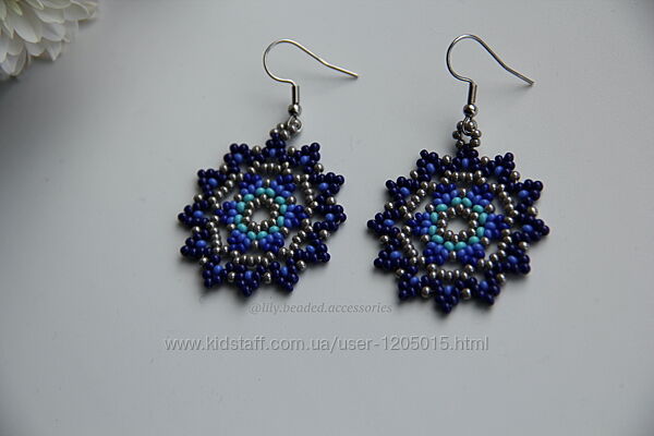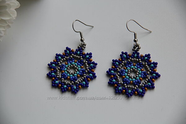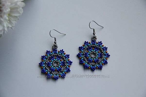 Сережки ′Мандала′ в синій кольоровій гамі.Матеріали: чеський бісер, фурнітура - нержавіюча сталь