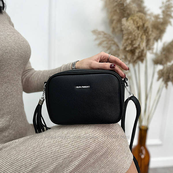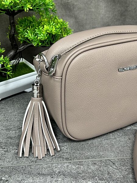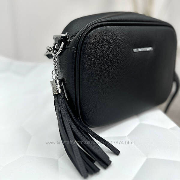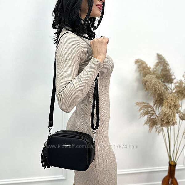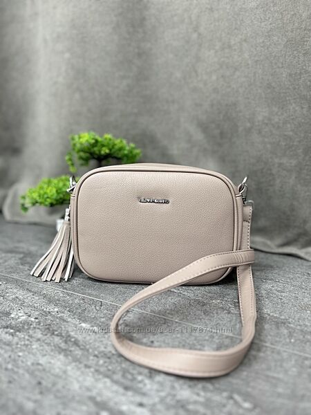 Стильна сумочка має одне велике відділення з двома внутрішніми кишеньками. Модель застібається на "блискавку" і прикрашена гарним пензликом з екошкіри. Ззаду на сумці розташована додаткова кишеня на "блискавці", в яку зручно класти невеликі плоскі предмети, документи чи купюри.
