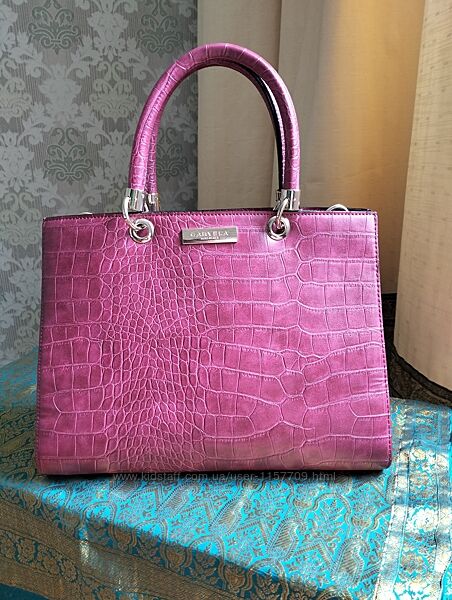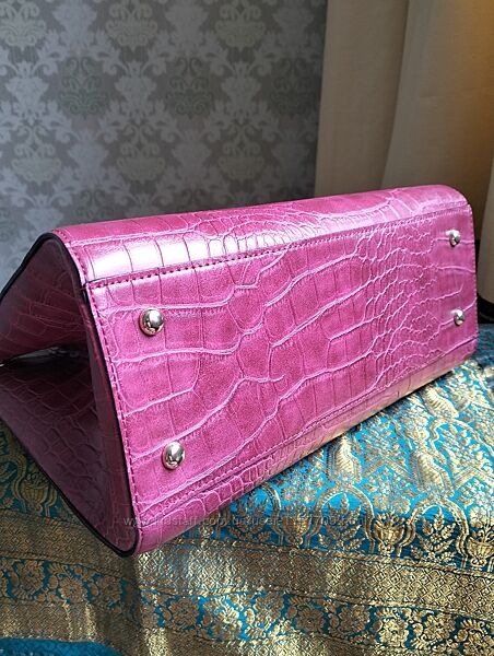 Розкішна сумка англійського бренду, із останніх колекцій . Колір - фуксія, прінт - рептилія, фурнітура - європейське золото. В комплекті ремінь на плече. Сумка досить велика і вмістка. Заміри: ширина - 31см висота - 26 см Глибина 15 см Висота ручок - 15 см Сумка в ідеальному стані, можна сказати нова.
