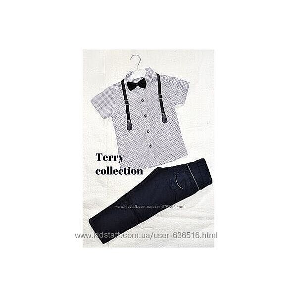 Нарядный костюм на мальчика "Terry collection", брюки, рубашка, бабочка, подтяжки. Бабочка и подтяжки отдельно снимаются. Есть утяжка в поясе.Знижка -15%при купівлі 2 одиниць святкових костюмів!