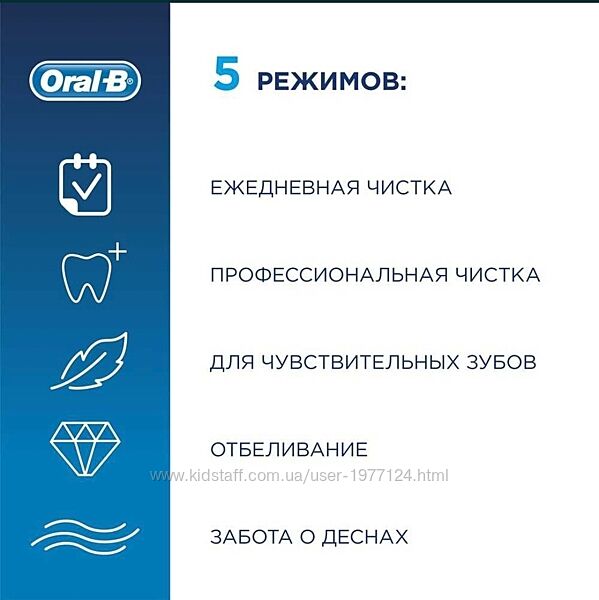 - 5 режимов чистки: ежедневная чистка, профессиональная чистка, режим для чувствительных зубов, отбеливание, уход за деснами.