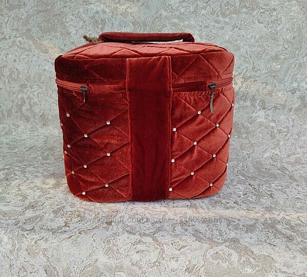 Косметичка ручной работы,украшена камушками,мягкаяЦвет темный красный кирпич (фото не передаёт)