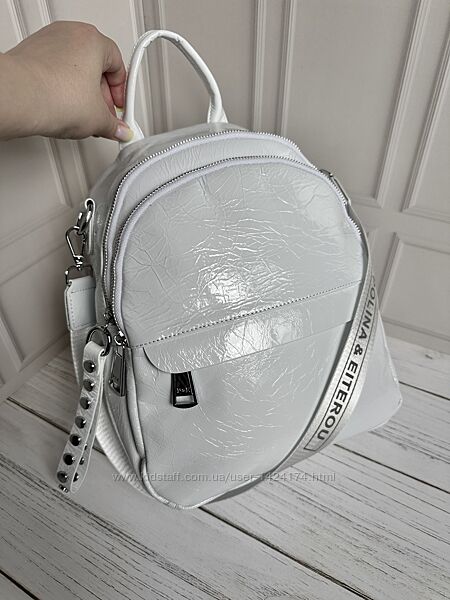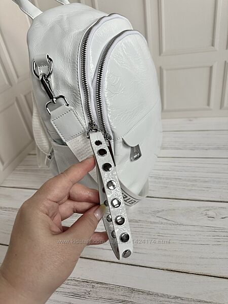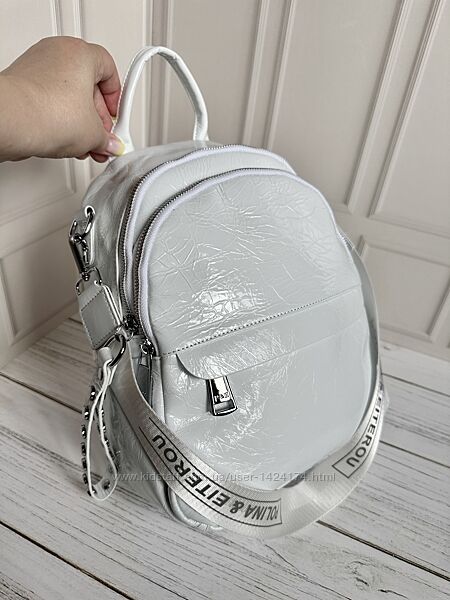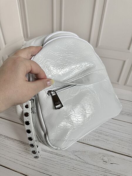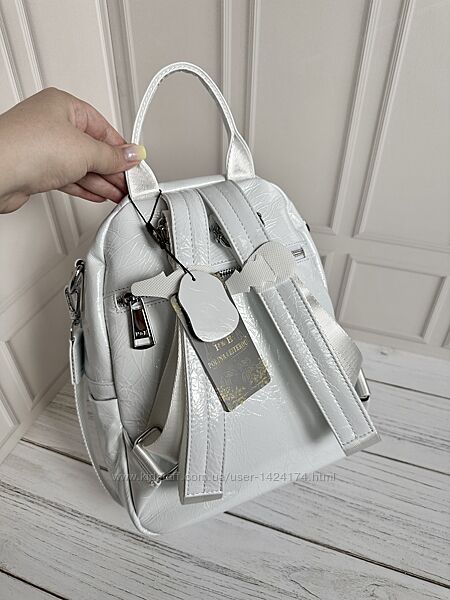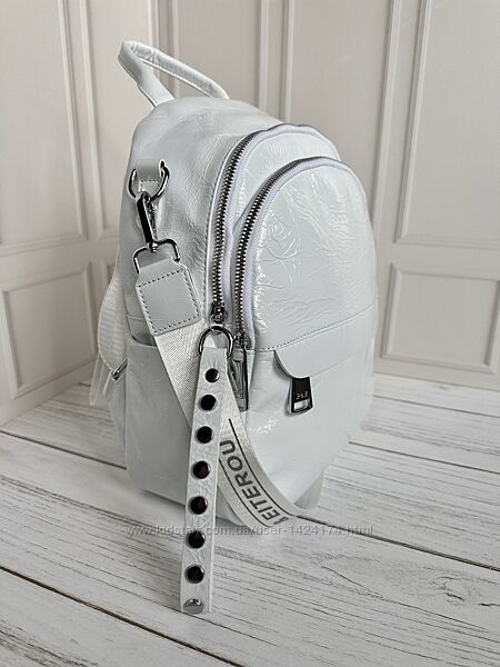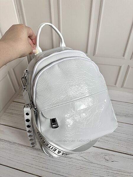 Колір: БІЛИЙ лак.Класний, компактний, зручний та місткий лаковий рюкзачок-сумка на два окремих відділення.