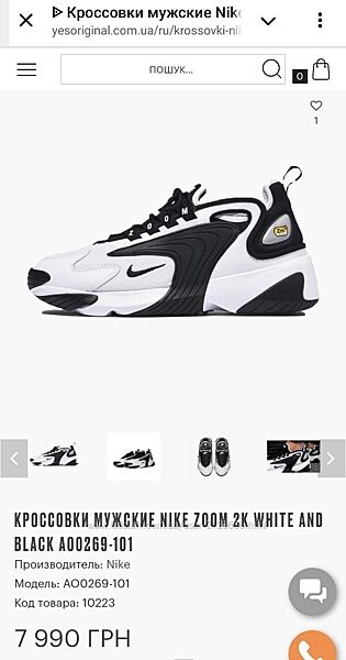 Подробное описание: Кроссовки Nike Zoom 2K White Black Оригинал