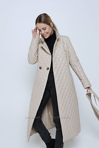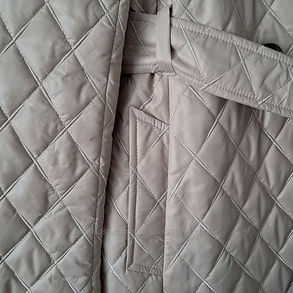 Пальто стеганое новое со всеми бирками на месте Демисезонное, утеплено одним слоем синтепона Ветром не продувается вообще - на весенние холодные ветра то, что нужно Цвет бежевый Размер наш 48 За счет запАха можно регулировать в меньшую/большую сторону Замеры: - полуобхват груди - 55 см - полуобхват талии - 51 см - полуобхват бедер -56 см - ширина плеч - 42 см - длина плечевого шва - 11 см - длина рукава - 64 см от плеча /47 см от подмышки - длина изделия - 115 см