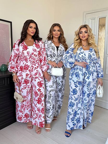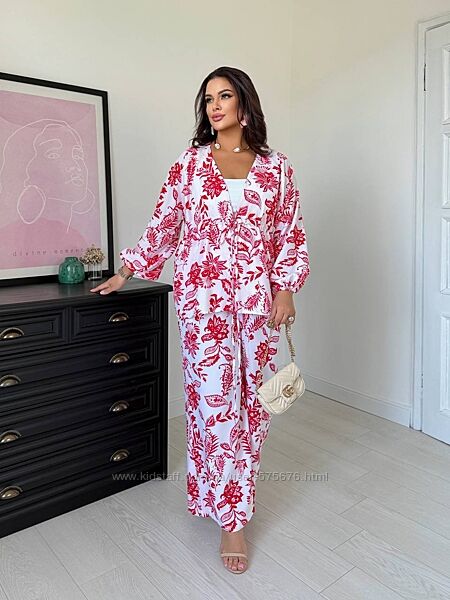 Ідеальне поєднання елегантності й розслабленого настрою. Складається з широких брюк та сорочки з довгими рукавами.