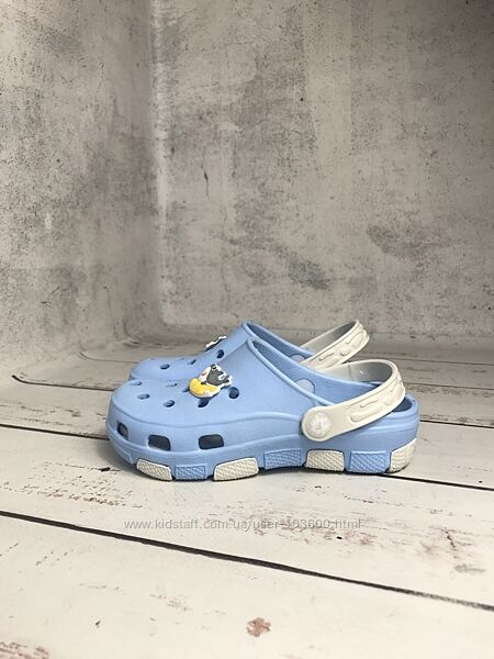 Створені повністю з невагомого піноматеріалу EVA, полімеру, відомого своєю еластичністю та м’якістюМають чудову вентиляцію за рахунок отворів в верхній частині, до яких ще можно пристібнути цікавий Джибітс, щоб зробити взуття унікальним