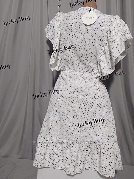 Подробное описание: Жіноча біла сукня в чорний горошок