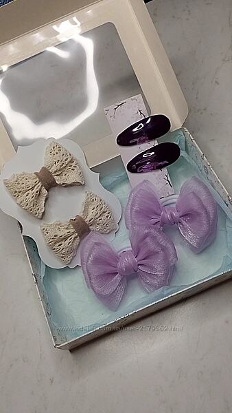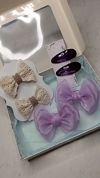 ✨ Подарунковий бокс із аксесуарами ручної роботи – це не просто прикраси, а справжня магія для маленької модниці!💜 Дві пари ніжних бантиків на резиночках, які доповнять будь-який образ, та пара заколочки клік-клак💜 Зручні та стильні аксесуари