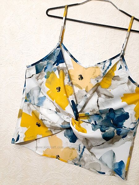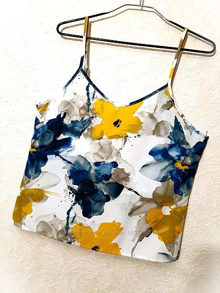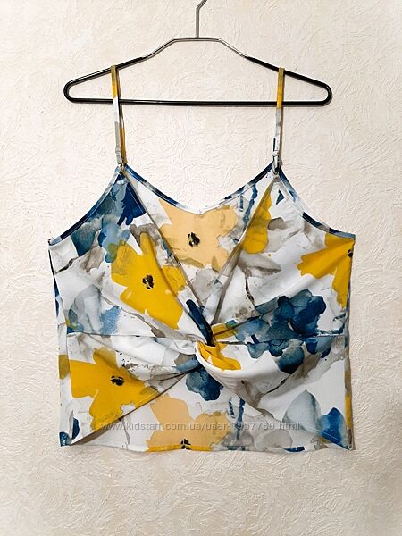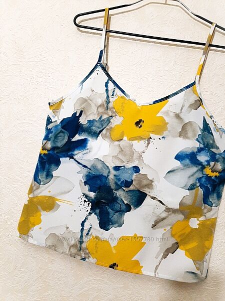 Подробное описание: Блуза-топ майка на регульованих бретельках біла в квіти сині жовті шовкова