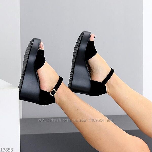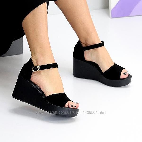 Подробное описание: Чорні босоніжки на танкетці Air, натуральна замша, босоножки 38,41р к 17858