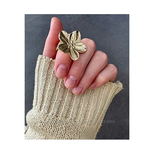 Элегантное кольцо цветок из медстали, золотистое безразмерное колечко в виде цветка.Диаметр цветка 3 см