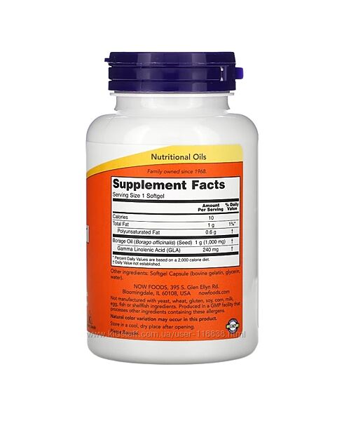 Подробное описание: NOW Foods, олія бурачника, концентрована ГЛК, 1000 мг, 60 капсул