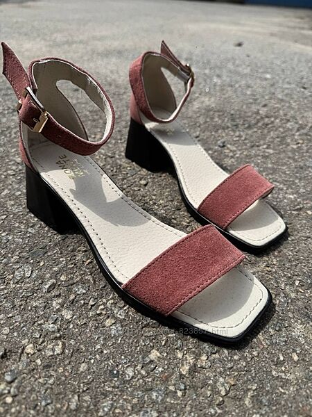 Шкіряні та замшеві босоніжки на невеликих підборах. 5 кольорів