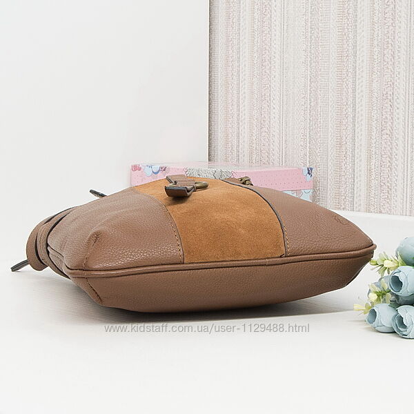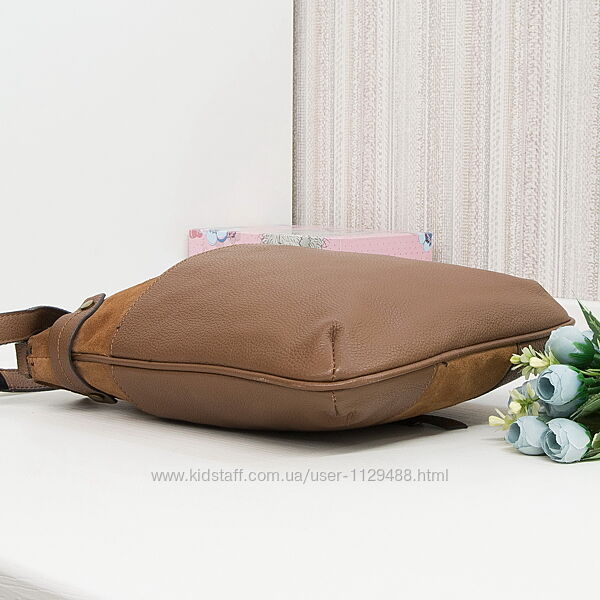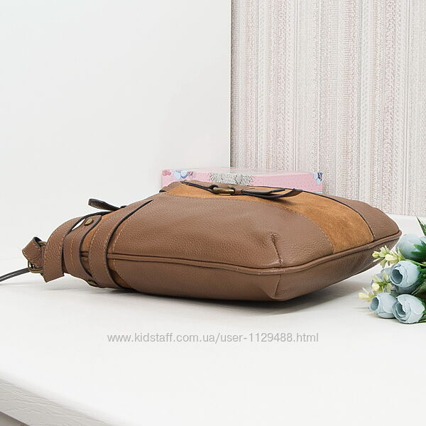 Практичная, эргономичная, универсальная. Выполнена из пластичной зернистой натуральной кожи в сочетании с мягкой натуральной замшей, в благородном карамельном оттенке. Основное отделение закрывается на молнию, внутри карман на молнии и открытый карман. На тыльной стороне большое открытое отделение, на фасаде большой карман на магнитной кнопке.