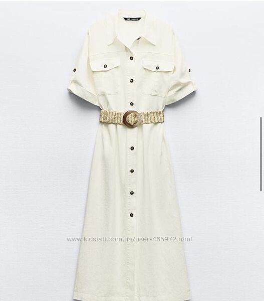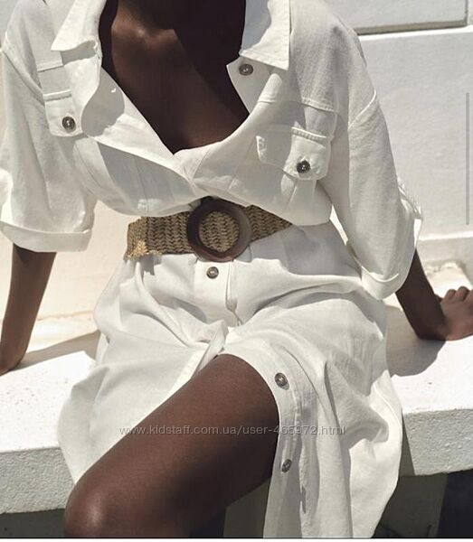 Біле плаття-сорочка із натурального льону відомого бренду ZARA із стильними кишенями стане базовою річчю для Вашого літнього гардеробу. Тканина - органічний європейський льон.Застібається спереду на ґудзики. Ремінець в комплекті.