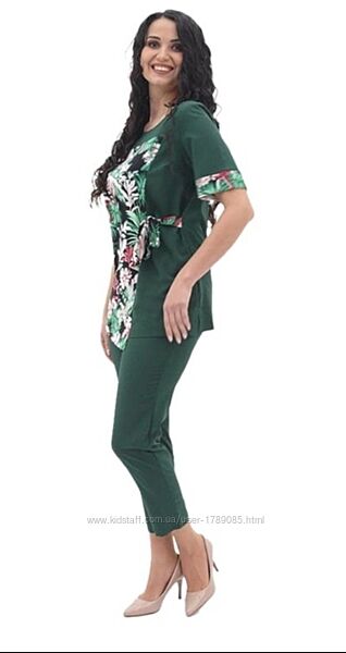 Костюм Ребекка миттєво додасть шарму вашому образу! Виготовлений з неймовірно ніжної та легкої тканини! Незвичний крій блузи підлаштується під будь-який тип фігури та зробить її жіночною й привабливою! Квітковий принт освіжить, а вкорочені, злегка облягаючі брюки з кишенями підкреслять красу та витонченість ніжок!