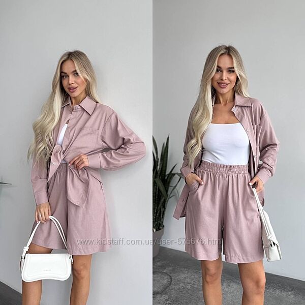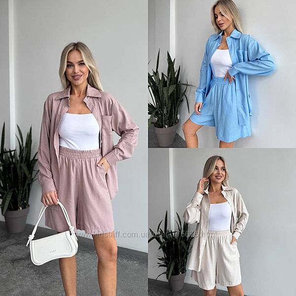 Подробное описание: 42-46, 48-52 костюм сорочка та шорти льон