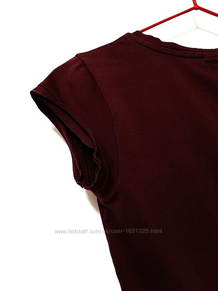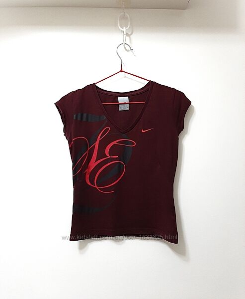 Футболка кофточка бордова, принт чорний/рожевий, короткі рукави, жіноча.Бренд Nike, Туреччина. Розмір (маркування) ХS. Підходить до розмірів 40-42-44.