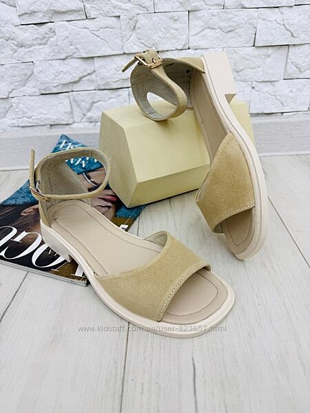 Подробное описание: Замшеві фабричні босоніжки з закритою п´яткою. Низький хід, без підбор