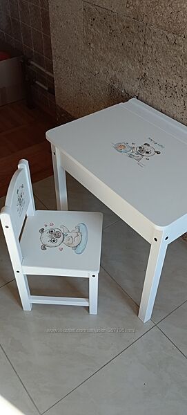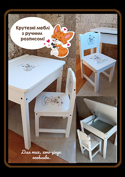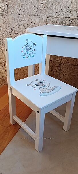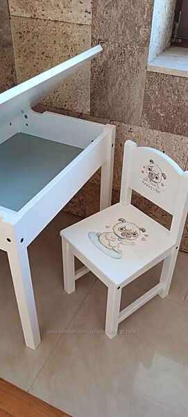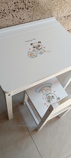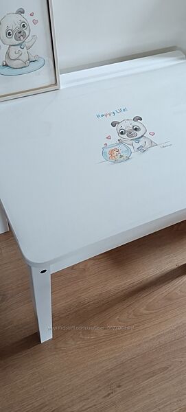 Пропоную комплект дитячих меблів ikea sundvik з ручним розписом. Стіл-пенал та стілець. Авторська ручна розпис "Мопс", меблі після реставрації, в гарному стані. На стільниці є міцна захисна плівка "м´яке скло". Вона термостійка, та захищає поверхню від подряпин.Комплект у наявності.