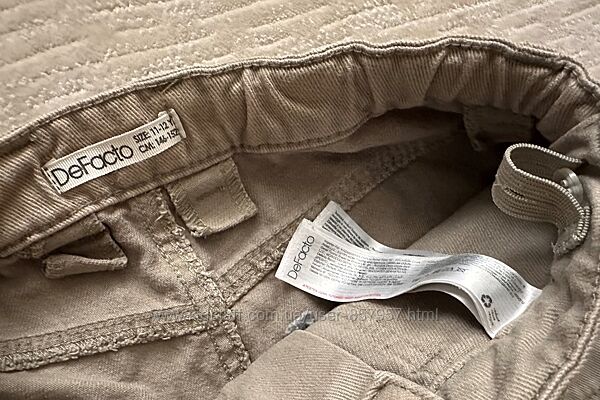 Джинси брюки штани від "De Facto" із нових колекцій - на 11-12 років, 146-152 по бірці, гарної якості у дуже хорошому / відмінному стані без недоліків, після однієї моєї доні. Тканина середньої щільності, колір між гірчичним і бежевим - відповідає фото 1. У поясі є утяжка для регулювання ширини.Довжина - 90 см, крок - 63 см, ширина у поясі - 35 см (регулюється резинкою).