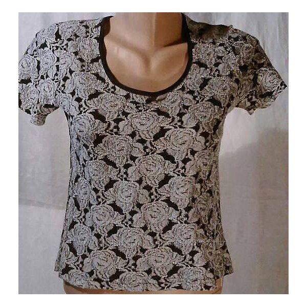 Блузка р.40 коротка з ніжно-сірими трояндами на чорному тліБлузка р.40 коротка, еластична тканина, короткі рукави, ніжно-сірі троянди принт на чорному тлі.