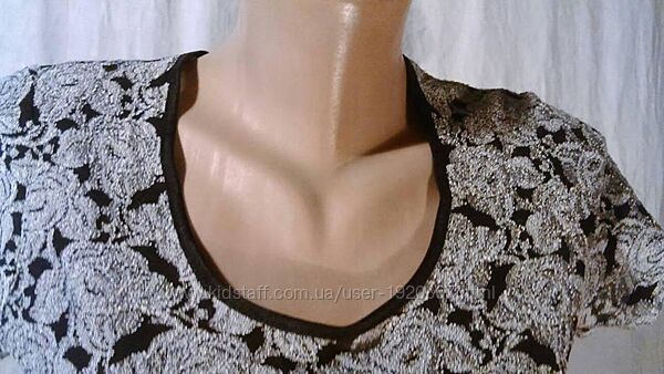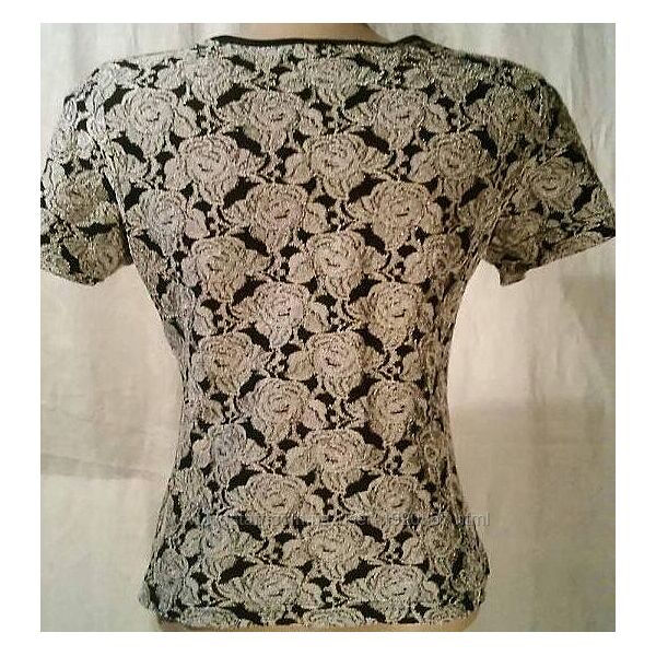 Подробное описание: Блузка р.40 коротка з ніжно-сірими трояндами на чорному тлі