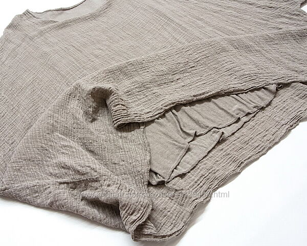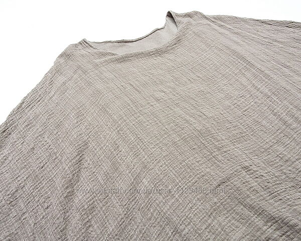 Необычная, очень свободного кроя, двухслойная. Верхний слой из текстурного хлопкового муслина в пудрово-бежевом цвете, нижний слой из мягкого эластичного дышащего трикотажа. Вещичка базовая, подходит на любую фигуру, легко сочетается с любым низом, служит отличным фоном для бижутерии и аксессуаров.