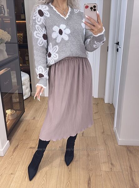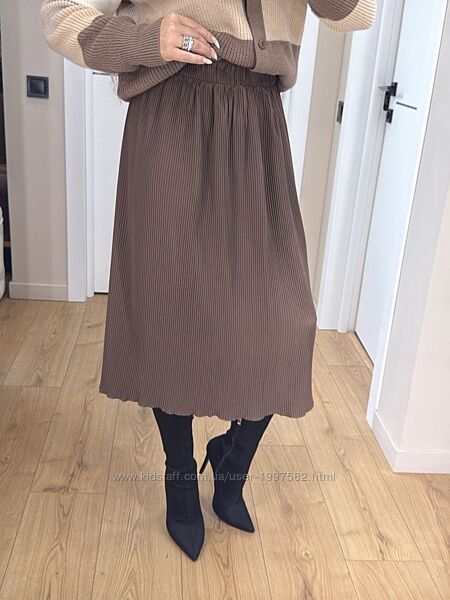 Виконана у формі силуету трапеція, модель з талією на резинці. Ошатно виглядає, не просвічується, робить гарну фігуру та добре тримає форму. Спідниця лише з одним швом, можна носити шов ззаду або збоку.