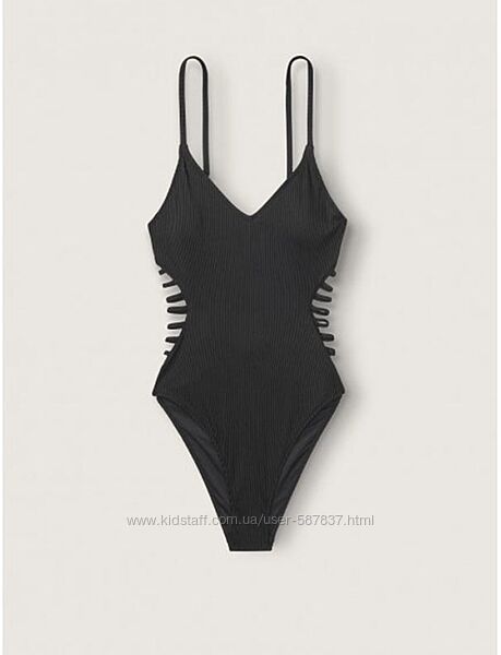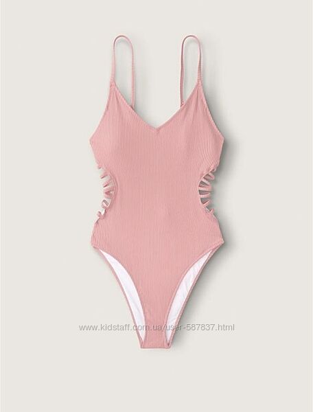 Суцільний купальник victorias secret р. s, чорний, рожевий, оригінал, в рубчик