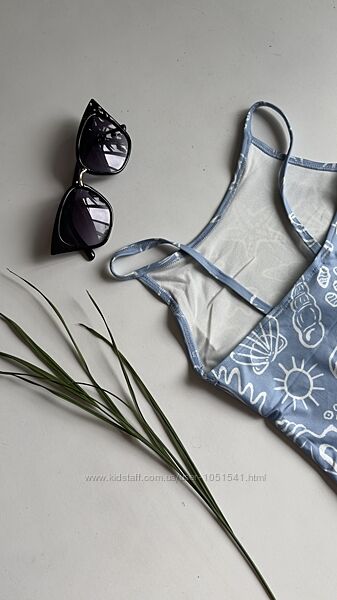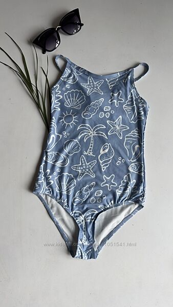 Дитячий цільний, закритий купальник від H&M голубого кольору -з принтом білих ракушок , на підкладціКупальник має тоненькі бретелі