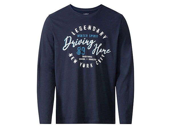 Піжамна футболка з довгими рукавами бавовняна з принтом для чоловіка Livergy LIDL 390208 темно-синій