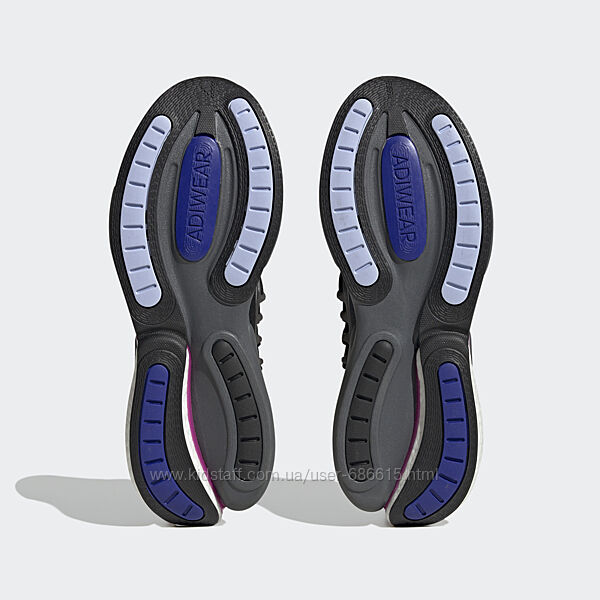 Амортизация Adiprene+Комбинированная промежуточная подошва Hybrid BOOST and BounceПодошва AdiwearСетчатый верх Стандартная колодка Шнуровка Верх этих кроссовок на 50% состоит из переработанных волокон. Цвет модели: Core Black / Lucid Fuchsia / Blue DawnНомер модели: HP6612