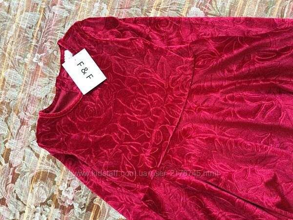 Червона Оксамитова сукня F&F з вибитими трояндами довжина 54; пог 31; Рукав від вороту 42