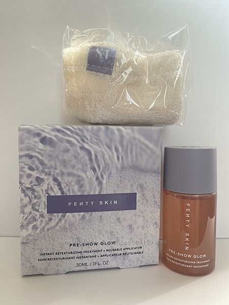 Оригінал! Новий! Обʼєм- 30мл!Fenty Skin Pre Show Glow Instant Retexturizing Treatment and Applicator - відлущувальний засіб з 10% AHA, який протягом 1 хвилини дарує вашій шкірі гладкість і сяйво. Цей догляд допомагає позбутися від мертвих клітин, очищує пори та вирівнює текстуру шкіри. Формула, збагачена ройбушем та фруктовими екстрактами, надає шкірі свіжості та сприяє її оздоровленню.