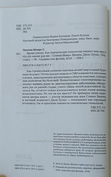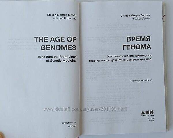 Стивен Монро Липкин, Джон Луома "Время генома. Как генетические технологии меняют наш мир и что это значит для нас", 298 стр.Состояние: новая. Но есть маленький нюанс - чуть примялся задний нижний уголок (фото 7 и 8).