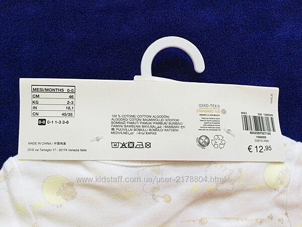 Подробное описание: OVS. Італія. натуральний Боді для новонароджених, чоловічок, сліп. 100bio