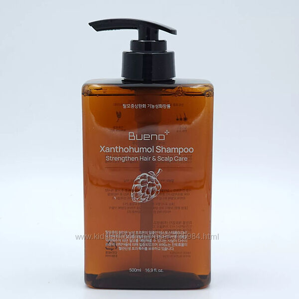 Зміцнюючий шампунь від випадіння волосся Bueno Xanthohumol ShampooАктивні інгридієнти: Ксантогумол (экстракт из хмеля), пивні дріжджі